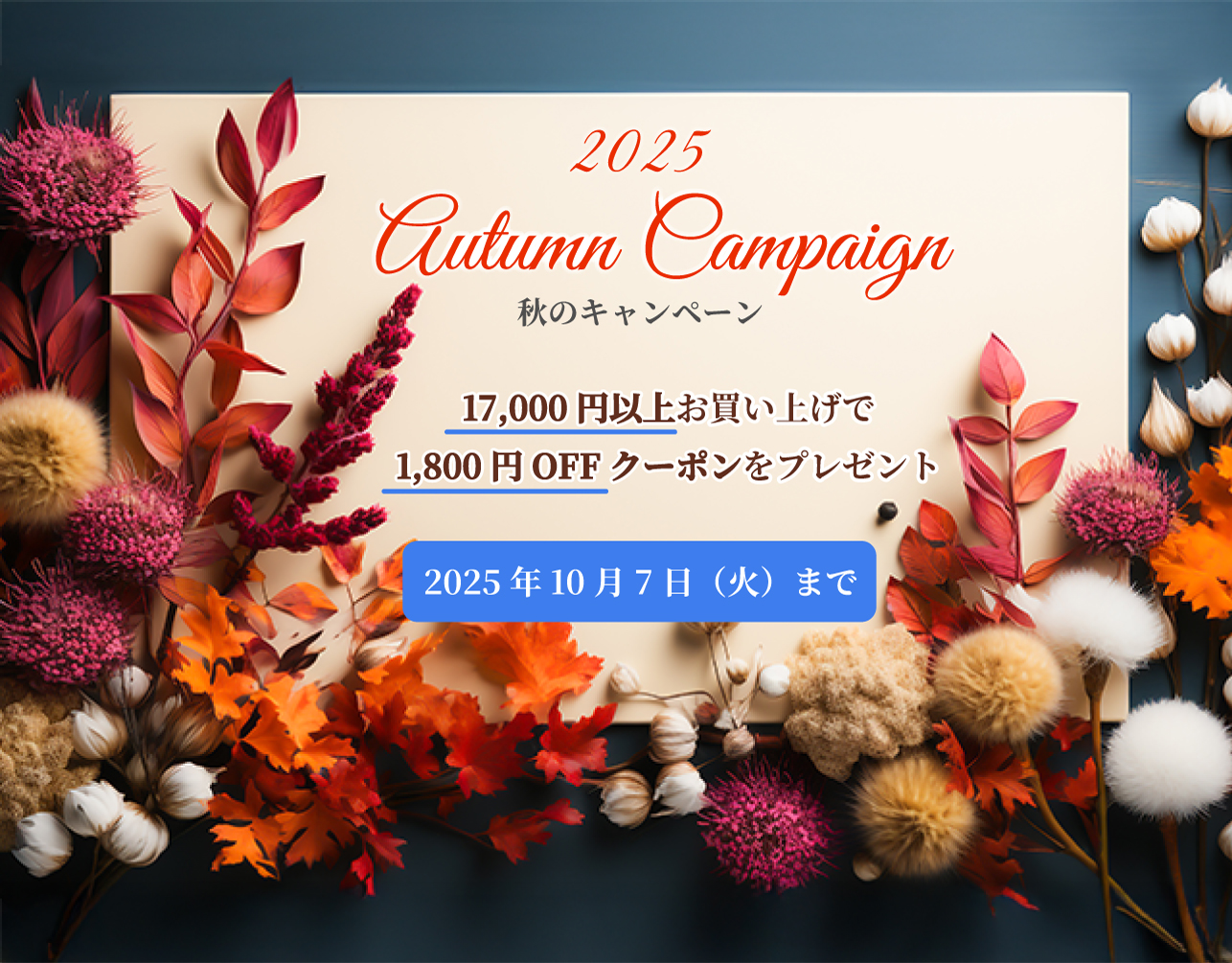 ※弊社ネットショップでのご利用時は、ご購入時に必ずクーポンコードをご入力ください。クーポンコードのご入力がない場合はAutumnキャンペーンクーポン対象外となり、割引が適用されません。